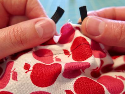 Complete by spreading out the bunched fabric evenly around the elastic so no one area is more bunchy than the rest. AND... you're officially done!