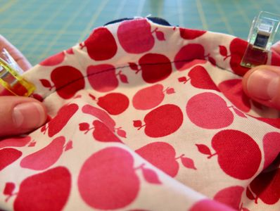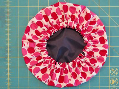 Turn the cap right-side out, by pushing all the material through the gap you made. Made sure the edges are fully turned so that the fabrics form a full circle--the cotton pattern on one side and the nylon fabric on the other side.