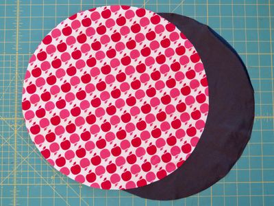 Begin by making a round paper pattern or using a large circular object to trace equal-sized circles on both pieces of fabric with fabric marker or chalk. Next, cut out the two circles following the pattern. I like to pin both pieces of fabric together and cut them at the same time rather than separately. That way they both come out the same.