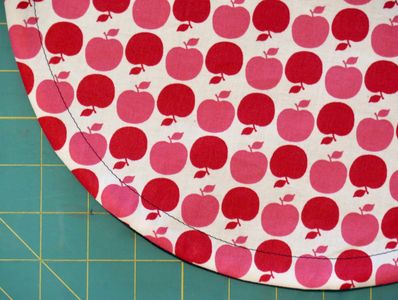 Next turn edges of both fabrics inwards to close the gap. Make sure the edge of the fold is in line with the rest of the circumference edge and pin in place. Sew gap closed with a straight stitch.